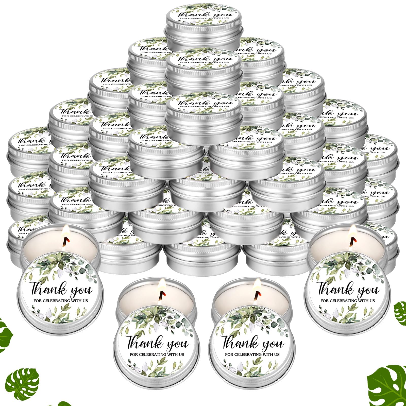 Material: Soy wax, essential oils, iron tin• Color: Multicolor• Size: Approx. 1.57 x 0.67 inches (4 x 1.7 cm)• Contents: 50 x Wedding candle favors